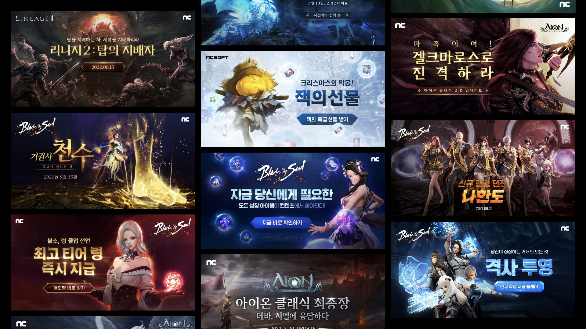 Over 7 years, I served as the Lead Visual Designer and Art Director for NCSoft’s performance marketing campaigns, supporting major global titles including Lineage W, Blade & Soul, and Project M. These campaigns required distinct visual systems per title, rapid asset production, and scalable design frameworks capable of handling high-volume outputs across multiple platforms.